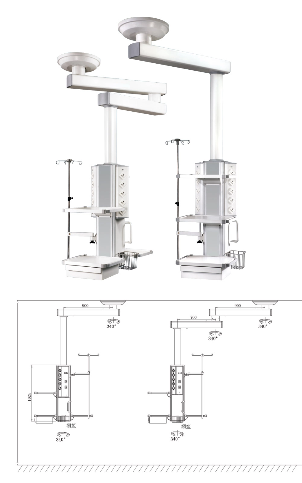 - 適用於搶救室、恢復室、ICU等場所,一床一塔