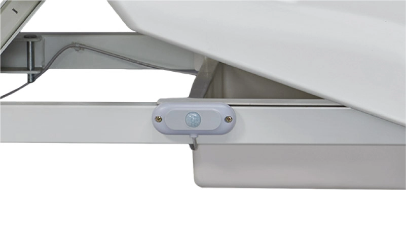 床尾配置煞車警示燈,在移動床體位置時提供警示效果。照地燈