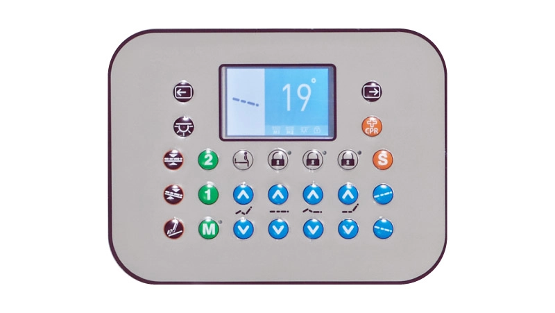 - 具備背部傾斜、膝部傾斜、背膝聯動、床面升降,以及特倫德倫伯臥式(Trendelenburg)等五大功能模式,方便醫護人員操作