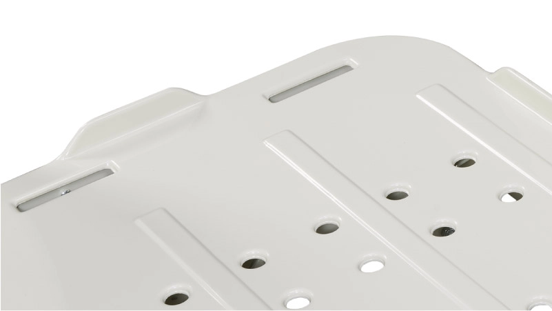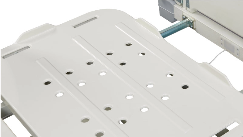 床面板設有約束帶孔,提供護理人員在必要時固定使用,提升照護安全性。床體結構