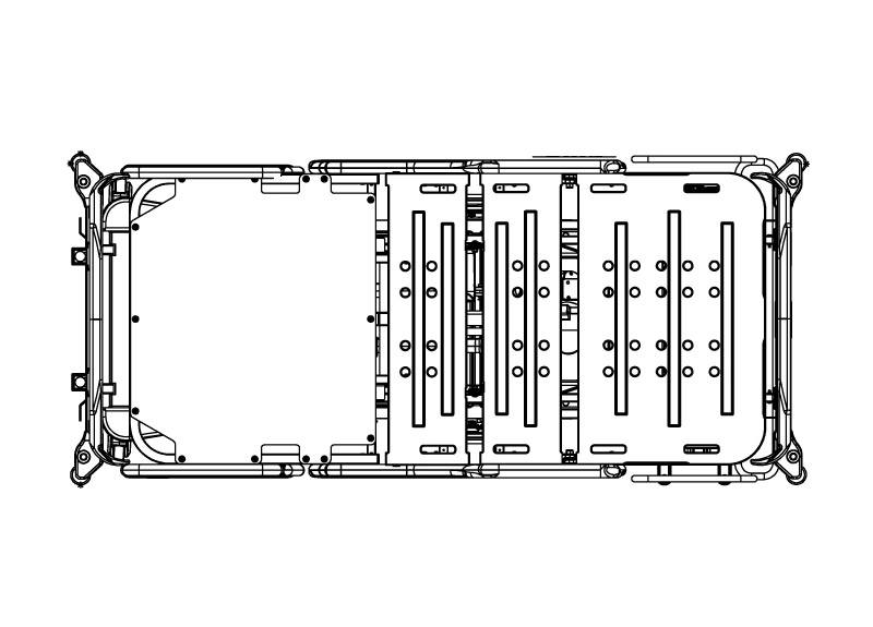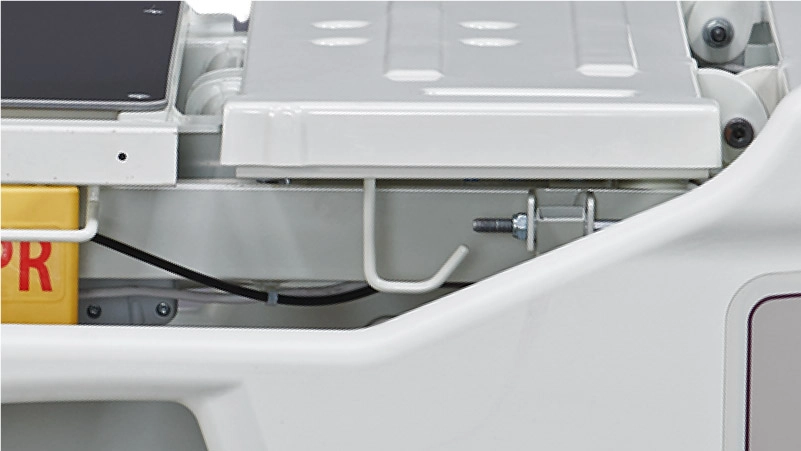 背部床面使用可透射X-Ray之材質,並於背部下方配置X-Ray固定座,不需要移動患者即可進行檢測。CPR快速釋放鍵