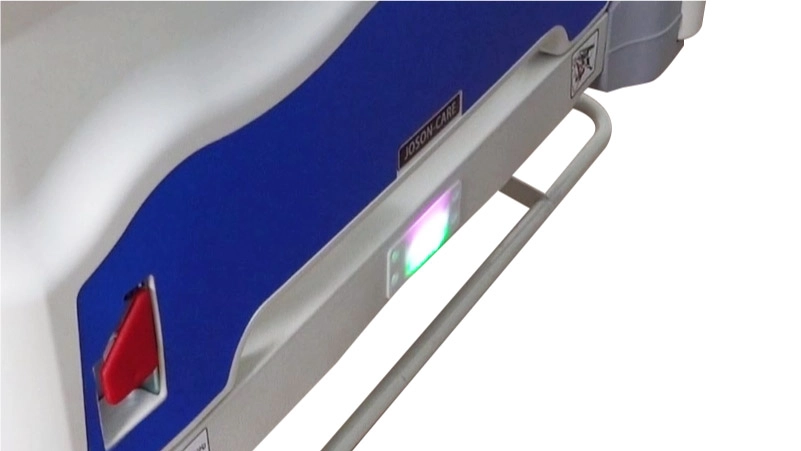 於電動床邊內側的護欄設置功能控制面板,可提供患者自行操作床體傾斜功能,以達到本身感受舒適的躺臥姿勢,並可操控照地燈狀態,提升夜間上下床的安全性。外側護欄液晶控制面板