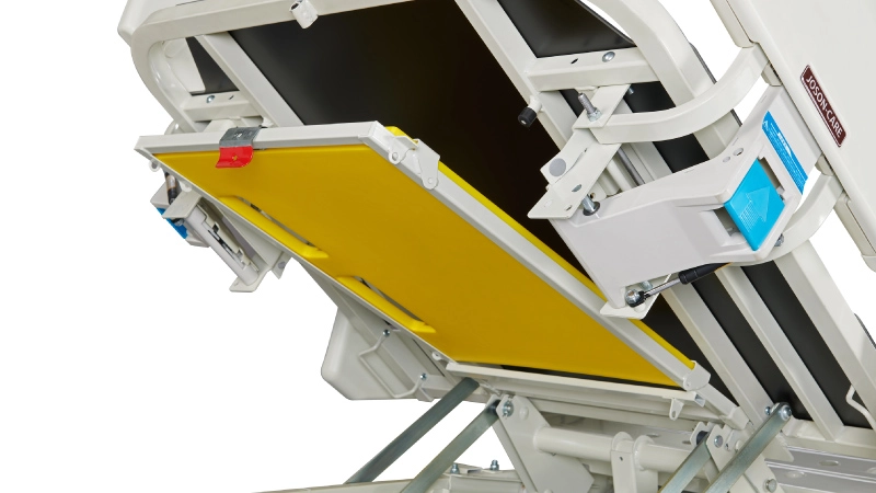 設置於床體兩側,讓床體床面快速放平,便於緊急狀況進行CPR急救。床尾延伸設計