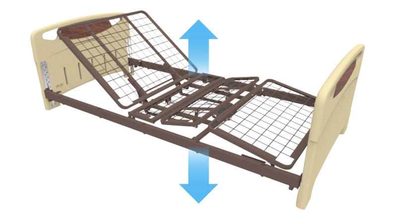 - 具備床面升降與背膝聯動,方便使用者調整至舒適體位