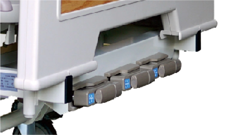 一般煞車輪,ON/OFF兩段式開關可固定或解除煞車,便於調整床體位置及避免固定時床體滑動。床體結構