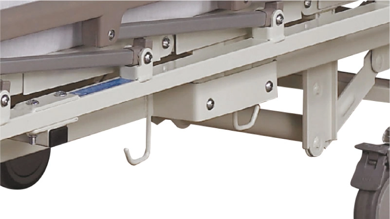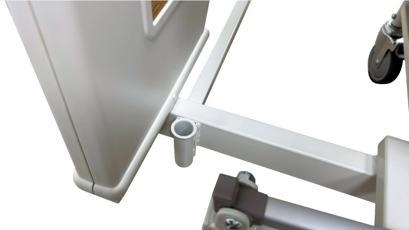 床身設有點滴架插座,孔徑20mm,適用於直徑19mm的點滴架,方便多角度安裝使用。引流袋掛勾